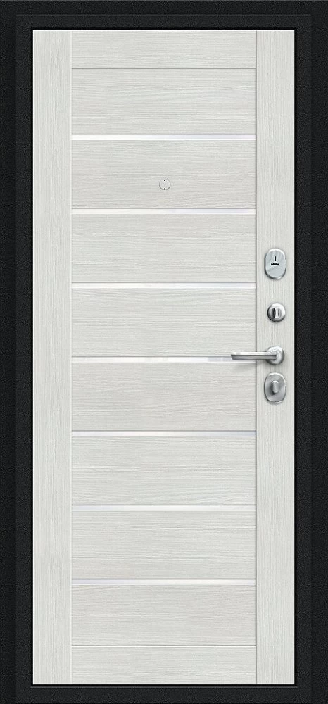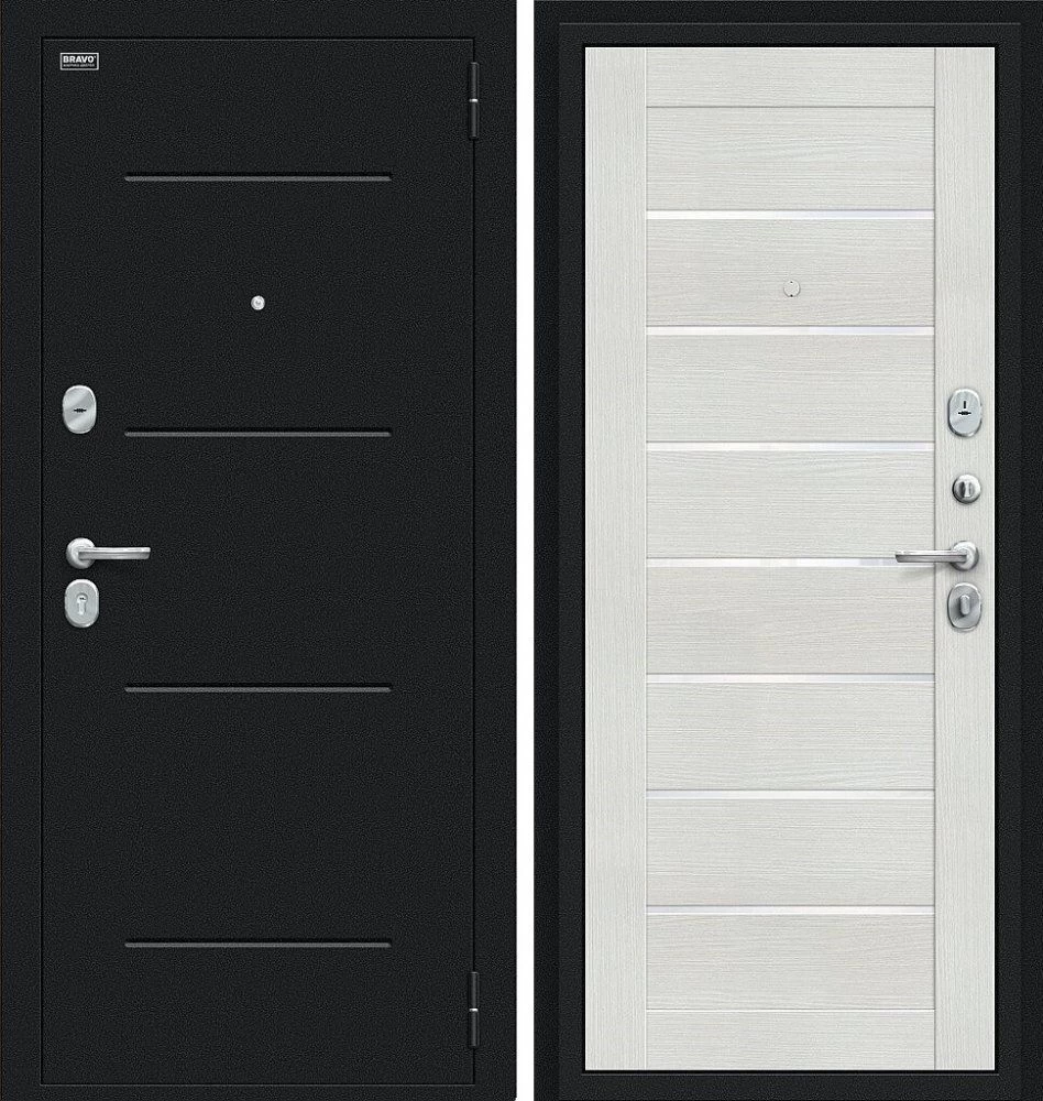 Надежная входная Дверь Браво Техно Букле черное/Bianco Veralinga премиум класса по цене 30 857 руб. Большая толщина стали защитит от проникновения в ваш дом, квартиру или коттедж. Используется очень качественная фурнитура: замки, цилиндры, ручки, защелки. Покрытие и отделка двери изготовлено под внимательным контролем производителя. Дверь имеет долгий срок службы и гарантию.