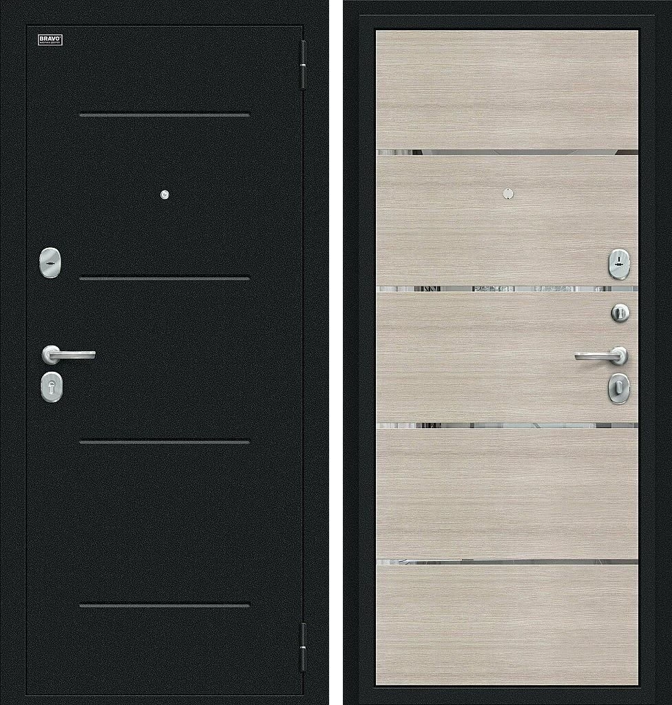 Надежная входная Входная дверь Лайн Букле черное/Cappuccino Veralinga BR4637 премиум класса по цене 30 055 руб. Большая толщина стали защитит от проникновения в ваш дом, квартиру или коттедж. Используется очень качественная фурнитура: замки, цилиндры, ручки, защелки. Покрытие и отделка двери изготовлено под внимательным контролем производителя. Дверь имеет долгий срок службы и гарантию.